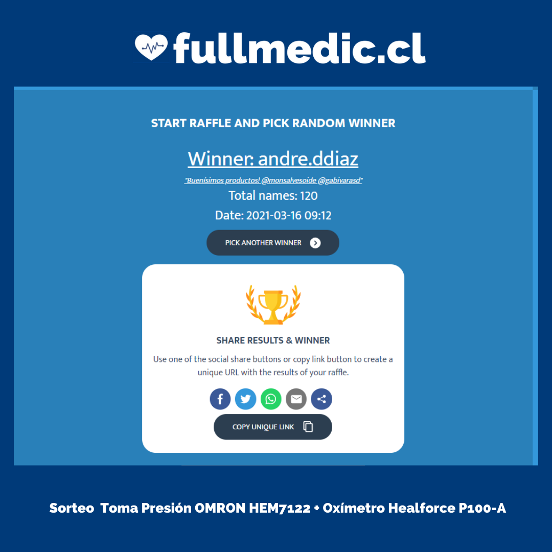 | Comunicación del ganador | Se realizará en la misma red social Instagram y/o en la tienda Online www.fullmedic.cl. |